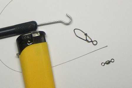 Um diesem ganzen Ärger aus den Wege zu gehen, baue ich mir meine Vorfächer selbst. Alles, was Sie brauchen, ist Stahlvorfach als Meterware, einen Twizzle-Stick und ein Feuerzeug. Nein, ich benutze kein ummanteltes Stahlvorfach, das ich verschweißen will.